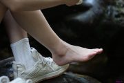 (裸足)浓妆艳抹的丽人脱掉了鞋子把白嫩玉足放箱大秀,脚底超级漂亮啊!36张