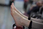 很美的一位女生,瓜子脸蛋符合现代审美要求,脱掉鞋就把玉足放在椅子上秀了,从动作神情可以看出美女天生丽质不需要怎么打拼全靠男人去养的女人,旁边坐着一个霸气土豪的老公就可以看出来了。从样子可以想象出她的脚是比较纤瘦的,是的,没错的,确实纤瘦的脚型,脚趾还很精致。加上她懒洋洋的坐姿秀起玉足来,实在想抚摸一把啊!