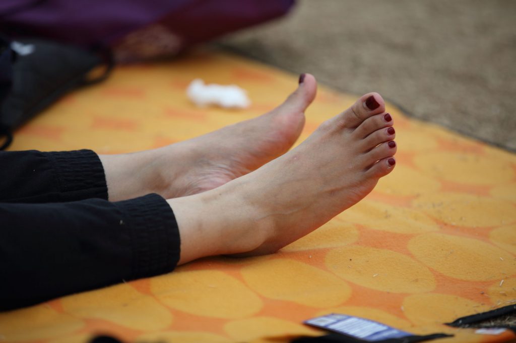 (裸足)墨镜富家女郎脱掉黑色运动鞋露骨感标准完美玉足,脚底脚面太性感了!52张