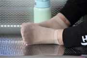 这是一位年轻姑娘,她在初春的时候脱掉了闷了好久的高帮帆布鞋后露出极度诱惑的白嫩玉足,因为脚心出汗很严重啊,她得用纸巾去擦自己的脚丫,于是把脚底抬得高高的,所以完美呈现性感的脚底,她的脚底好性感啊,好水嫩而且白里透红的,小弟采用精准的对焦技术把她的脚底细致拍摄一番!