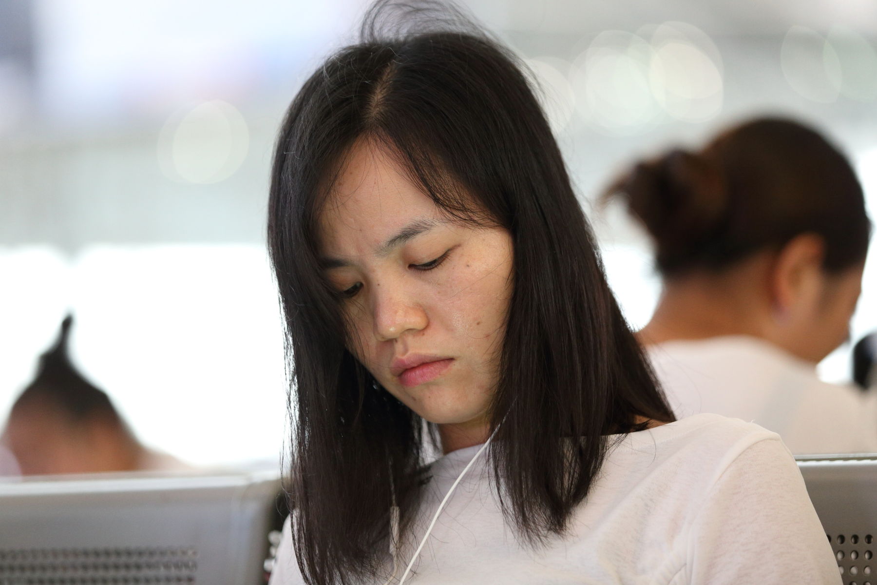 这位丽人应该是白领来的,但白领的应该是穿包脚高跟鞋,她不是,她穿的可是十分性感的高跟鞋,加上她穿的是长款裤子,只露出雪白的高跟鞋玉足,她的玉足脚型太好了,十分的标准.脚型和脚趾真是赞不绝口!