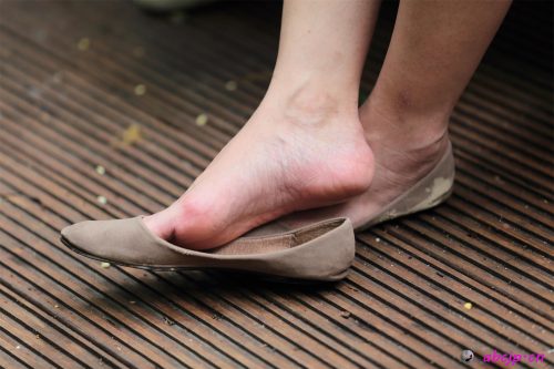 (平底鞋)完美的撬鞋姿势,好漂亮的美脚啊!白里透红的脚底!29张