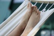 (裸足)牛仔长裤扎辫镇姑脱掉黑色包脚高跟鞋露出性感的玉足,放在旅行包上秀,脚底很性感啊!59张