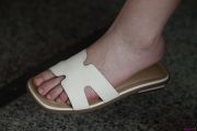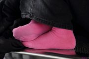 (裸足)年轻黑衣姑娘脱掉黑色凉拖露出白皙如玉的美脚踩在按摩椅上秀,脚面干净,脚底微略脏兮兮!70张
