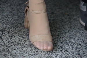 (丝袜)打扮贵气的富家熟妇脱掉黑色包脚高跟鞋露黑色超薄性感丝袜美脚,丝袜脚底水润啊,脚型纤薄柔软!33张