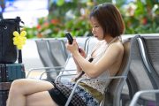 (裸足)英伦黑帽眼镜年轻姑娘脱掉黑色冬靴和橙色袜子伸直双腿秀骨感纤瘦的脚丫,脚底给人感觉有味道的!36张