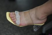 (丝袜)年轻漂亮的日系校园装美女大学生,脱掉黑色冬靴露出长款肉丝脚丫,得知她脚骨偏大,丝袜脚丫十分干净!32张