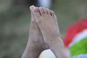 (裸足)捆辫子眼镜少妇脱掉红色皮鞋露长款橙色棉袜子美脚,最后脱掉袜露水嫩的美脚踩在椅上秀,脚趾既干净又水嫩!60张