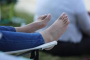 (裸足)打扮简约的白衣女郎脱掉半包脚奶白色平底鞋露骨感纤瘦的大脚,好纤薄修长的美脚啊!98张