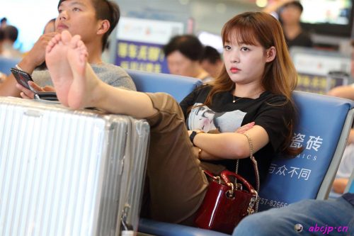 这位美女样子实在太漂亮了,而且很年轻,她脱掉了平底包头鞋把玉足放在旅行箱上大秀,因为天气热闷了很久平底鞋的缘故,她的脚底显得特别水润,非常性感漂亮,我在旁边看着就感受到原味的芳香,看见她的脚底有一股冲动,而且她的脚趾也相当漂亮!这真是人美脚美啊!
