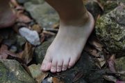 (平底鞋)眼镜清纯姑娘脱掉薄底凉拖踮脚秀脚底,脚底好红润柔软好看啊,脚型柔软,脚趾也很干净漂亮!31张