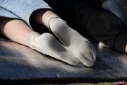 这位美少妇她在闷热的天气脱掉了白色运动鞋以后把丝足踩在椅子上大秀,她左右脚呈弯曲姿势,这样一来,小弟能拍到她的丝袜脚面和丝袜脚底,这丝袜脚底味道很浓郁,脚型也非常好,使人看了就很兴奋,而且她变换着各种诱惑的动作,时而能看清脚面,时而能看清脚底,小弟从不同方面拍摄她的丝袜脚面和脚趾,每一个动作都滴水不漏,因为太原味刺激了,丝袜实在太薄了加上又相当原味,变换的动作相当丰富!
