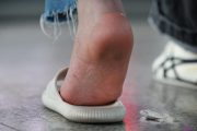 这是一双非常水润性感的玉足,加上脚型纤薄,拍摄的角度非常到位,这女生十分年轻,打扮潮流,她在闷热天脱掉了鞋子以后把性感的玉足放在旅行箱上大秀!