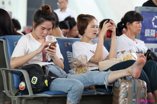 这是一组非常精彩大秀美脚底的作品,两位都是同龄的青春姑娘,她们在闷热的天气脱掉鞋子把性感的玉足放在同一个旅行箱上大秀,这场景比较少见,这样一来就能呈现玉足同台PK的场面,哪一双脚丫漂亮那就是每个爱好者的眼光不同,小弟看哪一双都得兴奋,她们的脚底实在太漂亮了,非常湿润,保养又好,超想上前抚摸她的脚丫,两双脚丫的脚底都是很修长的,尤其左边的那位姑娘的脚底最诱惑了,湿润又干净,当然右边那位美女的脚底同样性感极了!