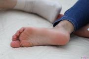 这位姑娘很年轻很时尚很漂亮,她在闷热的天气脱掉包脚的平底鞋露出的脚丫非常水润,而且她的脚丫非常的白皙,脚型超好标准,保养而且十分的好,从脚面看脚趾却显得十分的原味,脚型实在太好了,从脚底的方向看到的脚底十分水润性感!