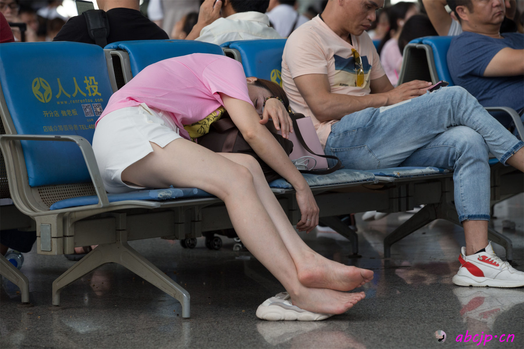 远远望去一双迷人玉腿加上裸露出性感美脚的少妇,睡姿不怎么好,完全被那双动人粉白的玉足吸引而来,靠近去发现这双脚就与众不同,十分粉白,脚型又好,十分骨感,脚趾也是整齐美观的,毕竟是从运动鞋中脱下来的,要比一般鞋子脱下来要原味得多。