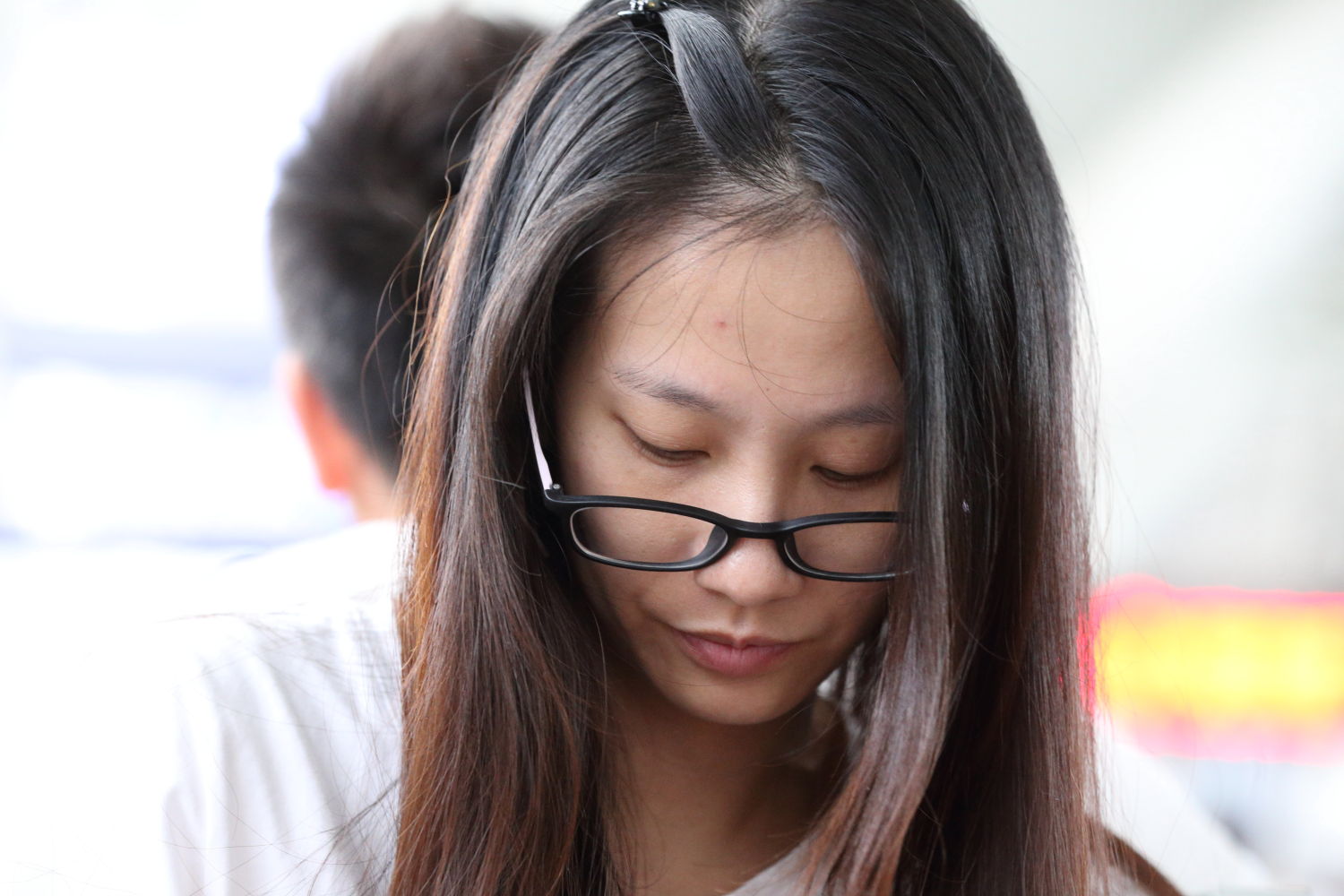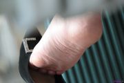 书生气质的眼镜姑娘,眼镜和鞋子同时脱掉,正在舒服地伸展自己的脚丫,脚丫干燥却有完美的脚型,还有精致整齐美观的脚趾,左脚的食指居然还带有脚趾环,估计是有男人喜欢她的脚丫想娶她的缘故吧。这姑娘的脚型就是好,就算穿上人字拖也一样是非常漂亮的。