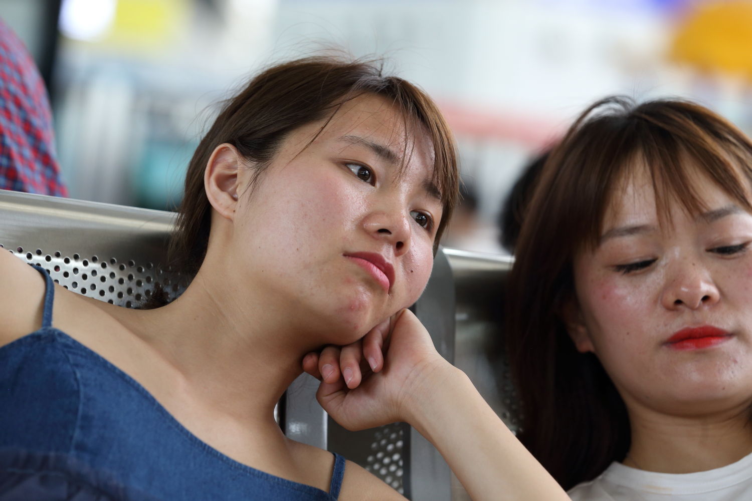 三位女生喜欢窃窃私语,像是在讲别人闲话,这么说来,三位姑娘是比较顾及场合的,说话小声嘛,不影响他人。颜值最高要数最左边那位了,她同时还脱掉了鞋子秀起她的美脚来,你说她脚完美吗?从正面看这脚确实挺完美的,脚趾整齐脚型又够好看,但当她把右脚放在凳子上秀的时候发现她脚趾缝隙却充满脚气的,她的美脚适合喜欢看脚气的朋友看的。若是喜欢看完美诱惑脚趾的朋友目光直接转移到右边那两位姑娘的脚看,那才叫做过瘾和爽,非常精致柔软整齐的脚趾,长长没有修剪得脚指甲,还相当的水润,而且尾指相当精致,脚趾控的朋友肯定会被爽得不要不要的,最后一位的脚趾也相当好看,但拍得不多,是因为她后面才出现的,话虽最右边姑娘的脚趾也特别漂亮,但也比不上中间那位姑娘的脚趾,太让人极度兴奋了!概括一下,看颜值看脚趾有脚气美脚的朋友这套适合,看诱惑精致脚趾出门右拐那位姑娘的照样适合,所以这套作品非常兼顾两种口味的朋友!