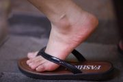 姑娘脱掉鞋以后并不是把脚踩在相应的鞋子上,而是喜欢交叉双脚用脚后跟伸进鞋子里,这样一来既能从一边欣赏到脚底,又能从另一边看见脚面,她的脚型丰满,加上闷热很久的包脚平底鞋,看起来特别的原味,姿势很好,小弟用了很细腻的手法把她的美脚拍摄了一遍又一遍。