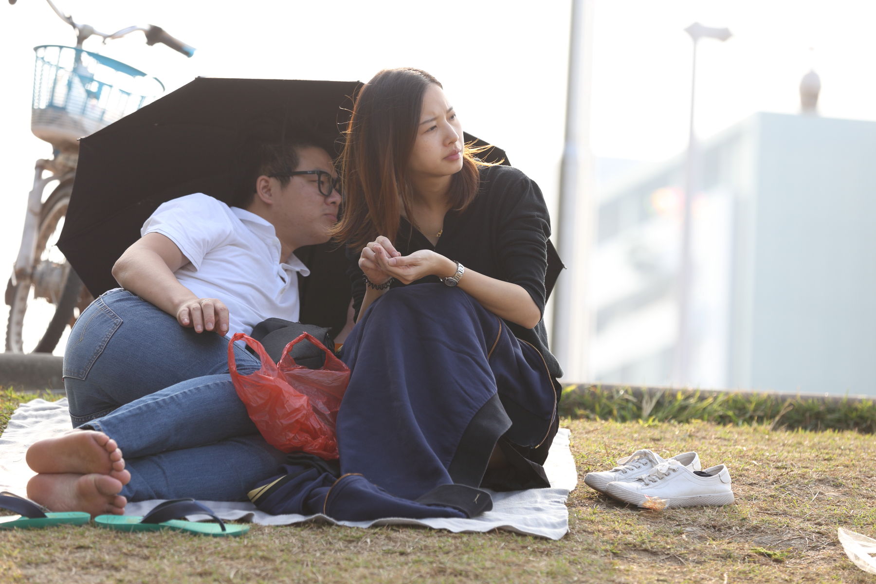 相当年轻漂亮的一位美女,躺姿伸直了双脚直接秀出脚底来,她的脚丫相当白皙水润,右脚的尾指有脚气,看起来就更加原味了,脚型非常的标准好看,骨感纤瘦,加上从白色帆布鞋中脱出来的.
