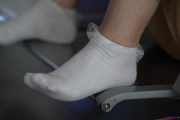 这里有两位少妇,她们在闷热的初春分别脱掉帆布鞋和包脚平底鞋以后露出超薄黑色丝袜,其中一位是超短丝袜,裹在丝袜里面的脚趾非常性感美观整齐,另一位则是穿着长款超薄黑色丝袜,非常撩人,小弟从不同方位细致拍摄她的丝袜美脚与美腿,当她翘高脚底时候直接看见勾魂的丝袜脚底,属实性感