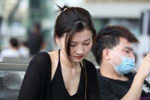 (平底鞋)打扮颇具港台明星气质的黑衣美女,黑色人字拖极其新潮另类,脚型娇小,脚趾整齐干净!27张