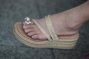 (平底鞋)没想到时尚靓丽的美女的脚趾如此短小,略宽大的脚型,鞋子简约却显贵重!30张