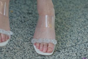 (高跟鞋)丰满的眼镜清纯姑娘的玉足好娇嫩啊,透明高跟美足让人大饱眼福!50张