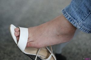 (高跟鞋)熟女松掉白色高跟鞋带优雅地跷二郎腿挑鞋,脚型略偏厚实!56张