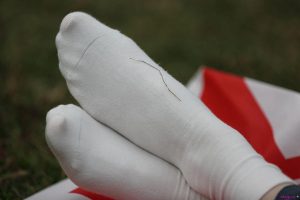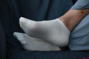 (袜子)身材苗条的素颜丽人脱掉白色皮鞋露宽大尺码的白色长款棉袜子美脚,十分有味道的!62张