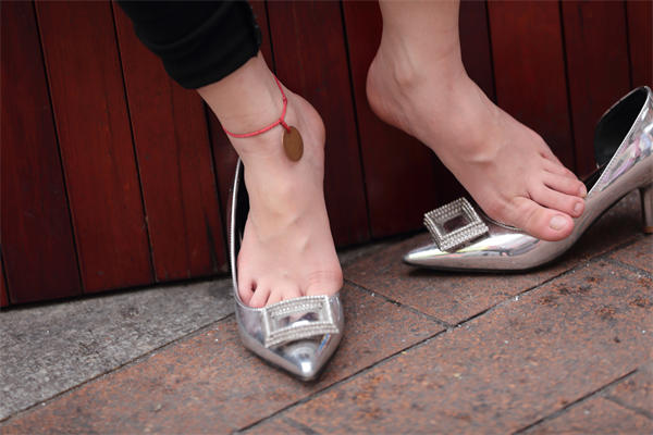 (裸足)两位年轻姑娘在踮脚和挑鞋,还把鞋子脱下来晾脚!姿势相当迷人!40张
