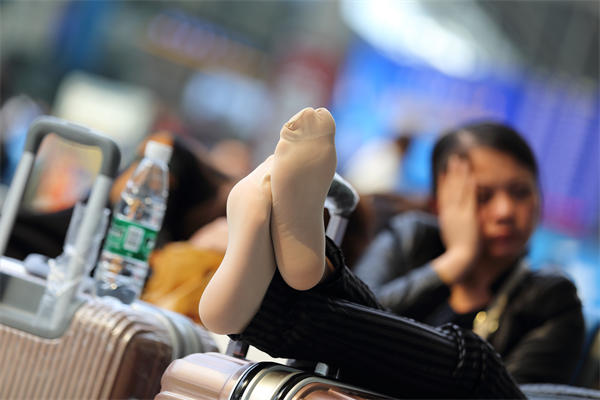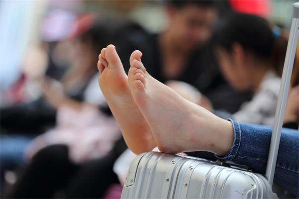 (丝袜)美少妇在闷热的车站脱掉了鞋把丝袜美脚放到旅行箱上大秀,性感超薄丝袜脚!86张